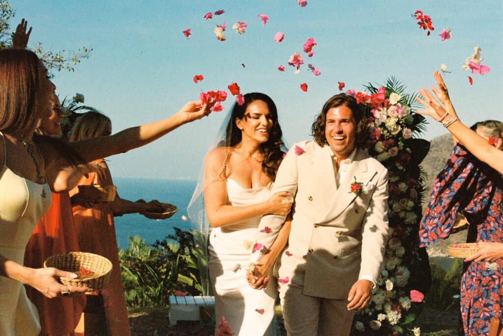 Julia + Wes had their wedding in Mexico this last summer with pops of pink bougainvilla, popsicles on the dance floor, and a fully clothed pool jump!